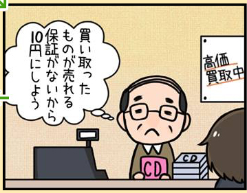 買取りの感想といいますか、むしろ販売チャネルとして利用させて頂いてます。正直、店頭に並べておくよりもよく売れるので、価値がありそうな本は、調べて、代コムさんに毎日のように送ってしまっています。中古品商売をやっていると、クリーニングも大変ですし、売った後のクレーム対応が結構大変なんです。「書き込みがあったから返金してくれ」ですとか。